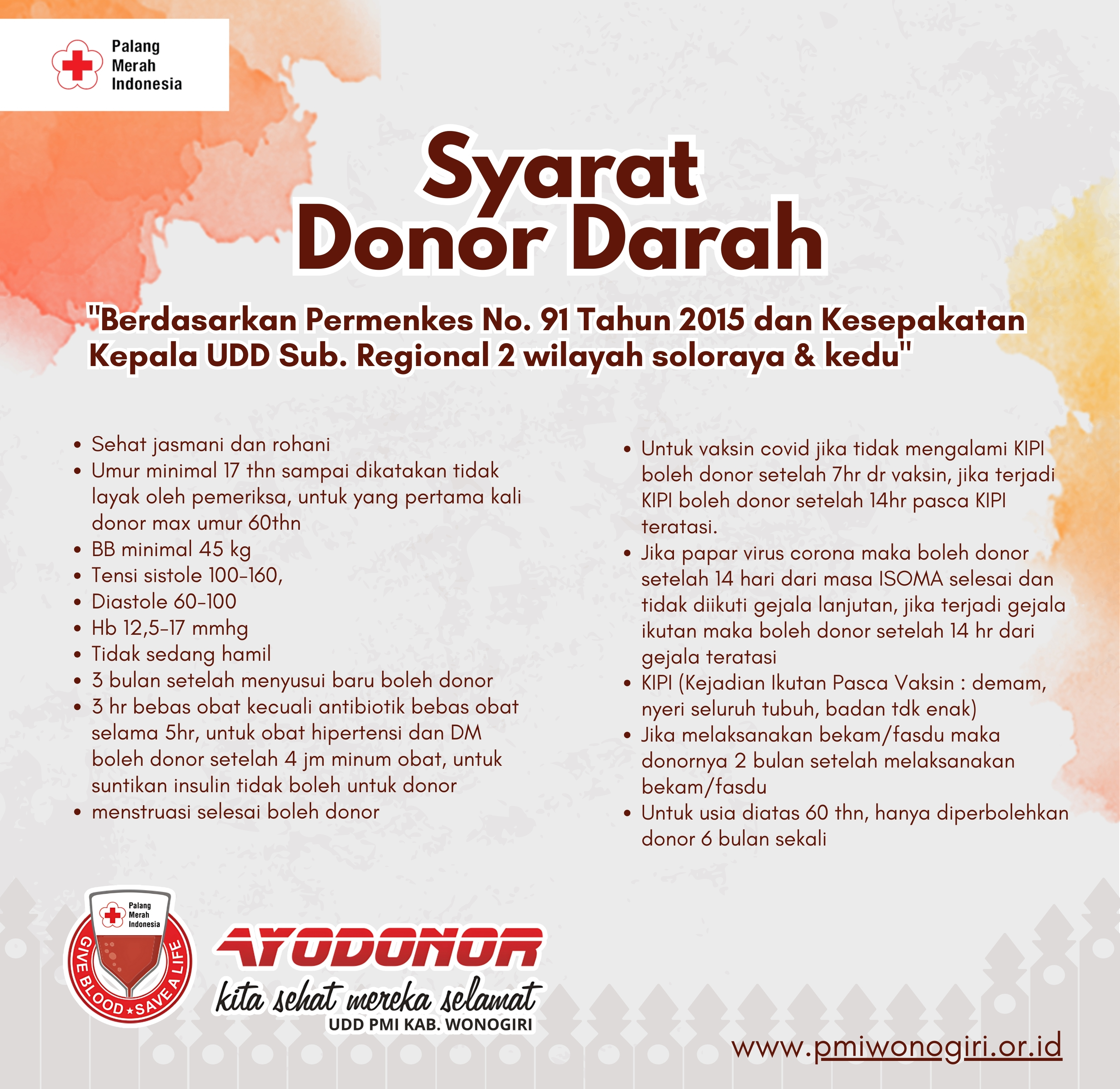 💉 AYO DONOR DARAH! Darahmu bisa jadi penyelamat nyawa orang lain. Sebelum datang, pastikan kamu memenuhi syarat donor ya! Donor ...